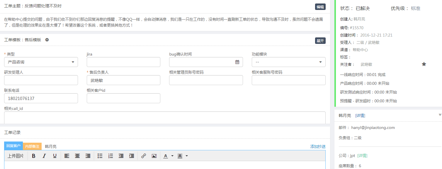 - 工单全面记录用户信息
